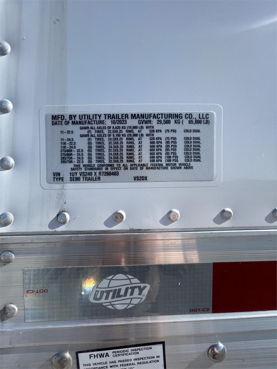 24K Floor Rating, Hendrickson Ultraa-K Air Ride, Waltco WDV-55 Liftgate with Header Kit & Dome Light, Roll Door Track Protection, 24in Bang Plate, Crossmembers: 12″ C/L, 5/18″ x 13″ HDPE White Plastic Wearband, Logistic Posts