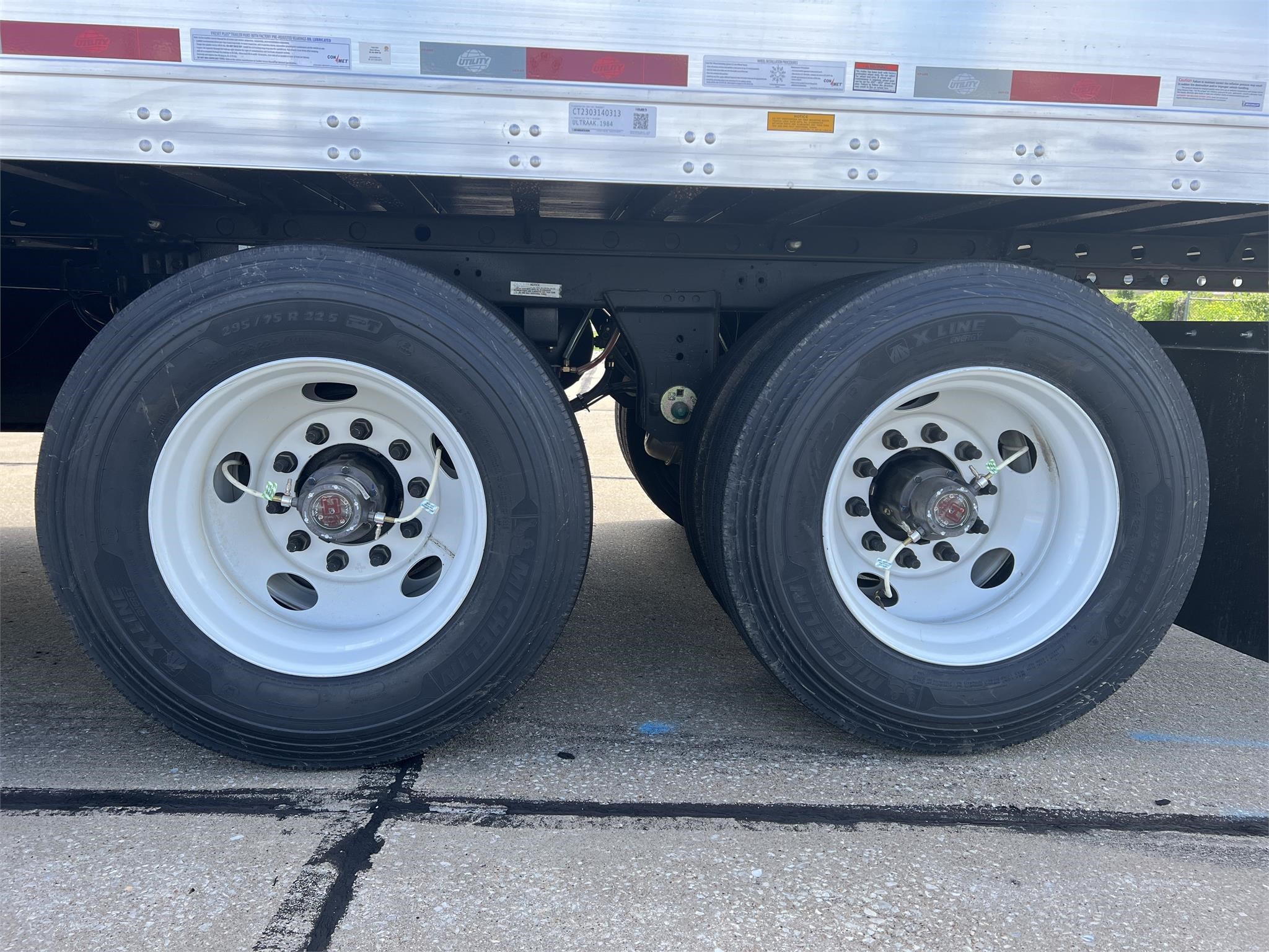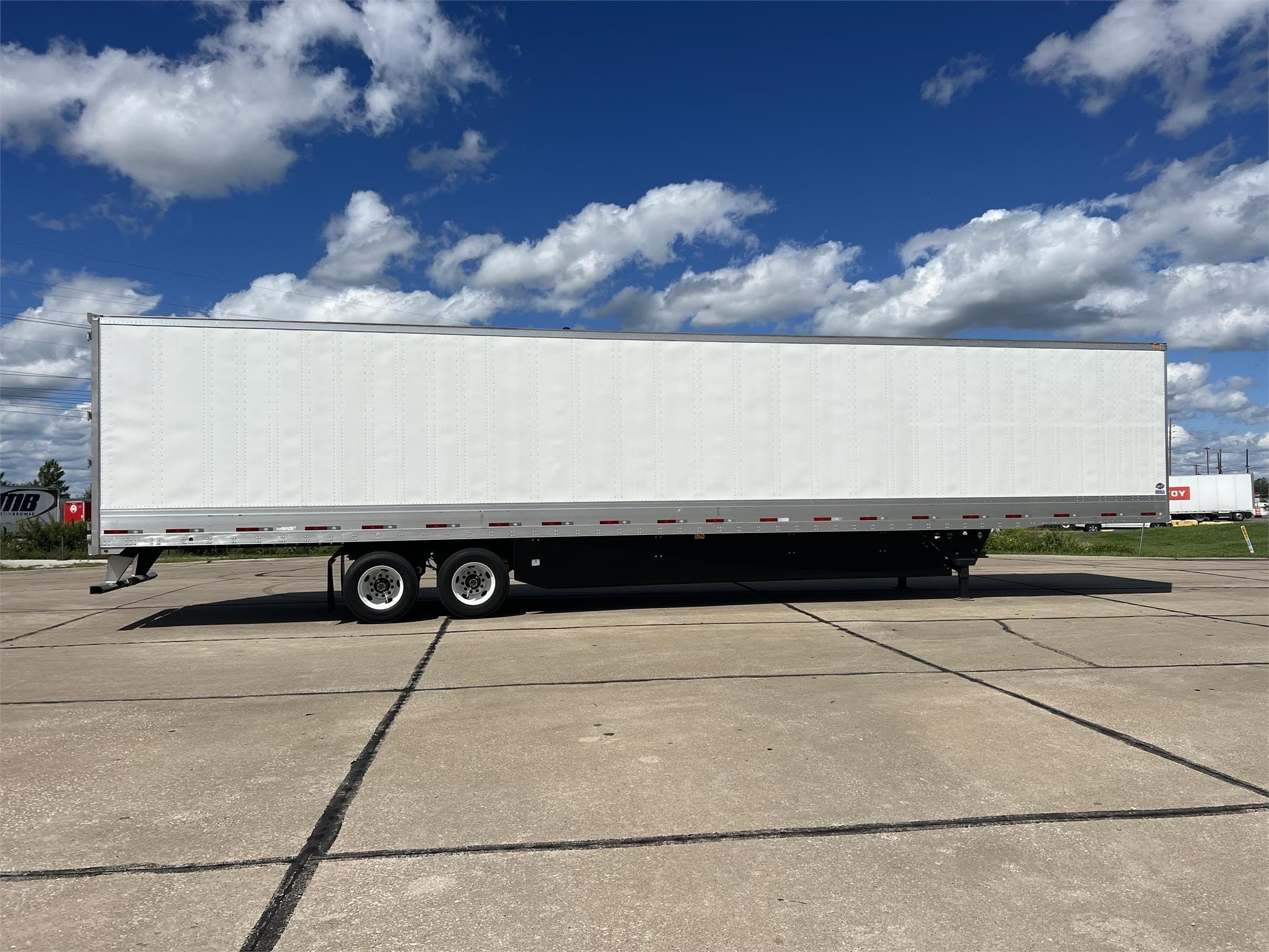 D-X 101, Heavy Duty Tall Bottom Rail (TBR), 14 GA Wearband/Scuff, Logistics Posts on 16”/24” C/L, ¼” Upgraded Front Sub, 20,000 lb. 1-3/8” Oak Floori w/ 27” Rear Threshold Plate, Hendrickson Ultraa-K Suspension w/ Tire Maxx Pro Tire Inflation System & Surelok Anti-Dock Walk Device, SST Rear Case & ICC Bumper, PPW Swing Doors, Aluminum Roof, Steel Wheels, Black Skirts